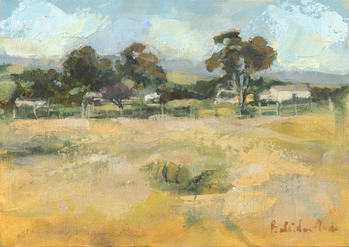 ‘Across the Field, Koringberg’, contemporary oil painting by South African artist Belinda Ardé